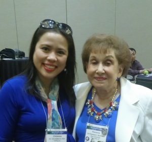 Exchanging notes with former APA President Dr. Florence Denmark
